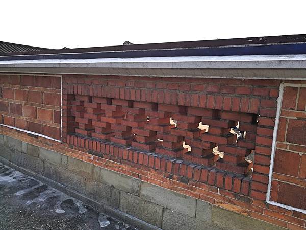 瓦片的屋頂,採用哭瓦(曲面向下)與笑瓦(曲面向上)的堆放,很多民間鄉間的土角厝都看獲得不異的設計。