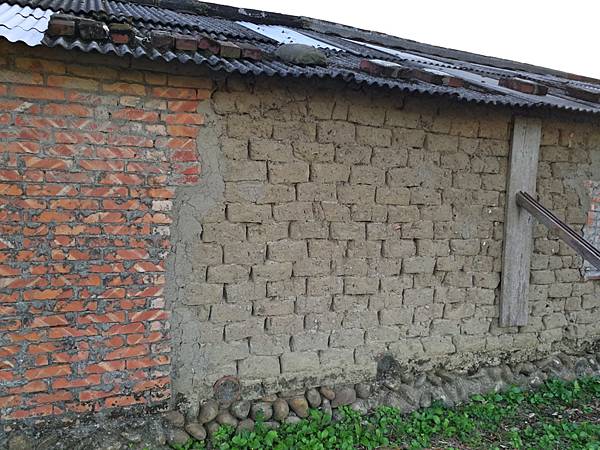 方才在停車場外,恰好看到一棟房子,外牆袒露,應當就是雷同的工法,看起來是純土壤製作的磚頭翻譯