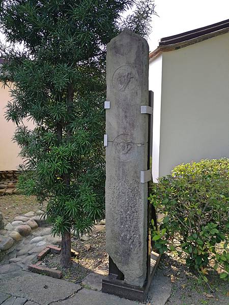 在外埕有四座旗桿座,擺佈各有兩個,靠外面的是旗桿架是石座,後面的則是木座翻譯