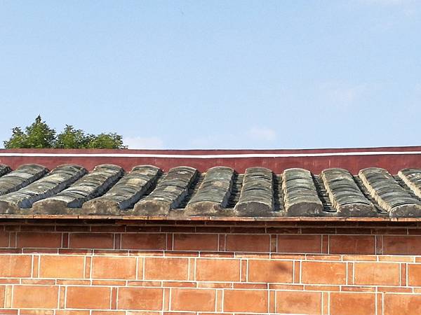 瓦片的屋頂,採用哭瓦(曲面向下)與笑瓦(曲面向上)的堆放,很多民間鄉間的土角厝都看獲得不異的設計。